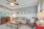 A beautifully designed and comfortable living room has a large Smart HDTV.